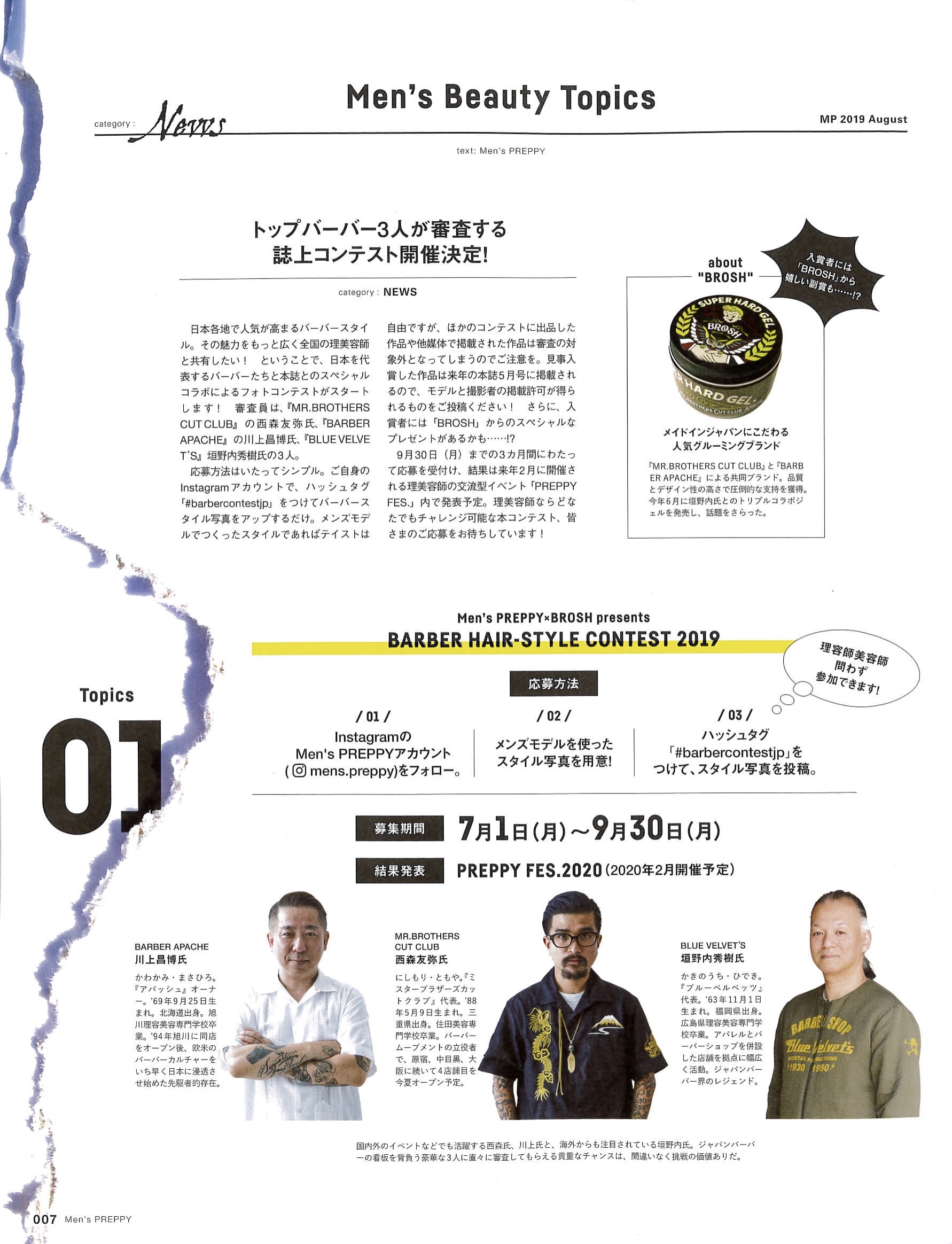 Men’s PREPPY 8月号に、BARBERCON NYCのレポート並びに大阪店スタイリスト出上成翔の特集記事をご掲載いただきました。